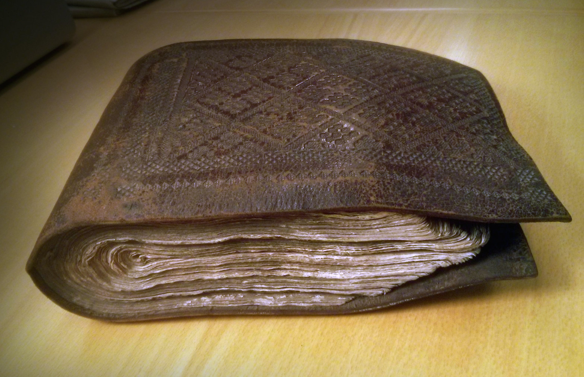 The sewing and covering of a book is called binding. A set of sheets folded, nested and sewn together forms a quire (also called a gathering or section). These are arranged side-by-side and sewn at the fold. By analysing holes at the fold of each quire we can see whether the book was rebound, or if it is in its original state.