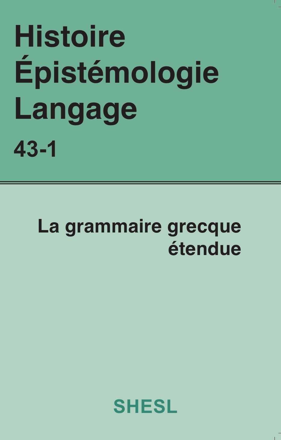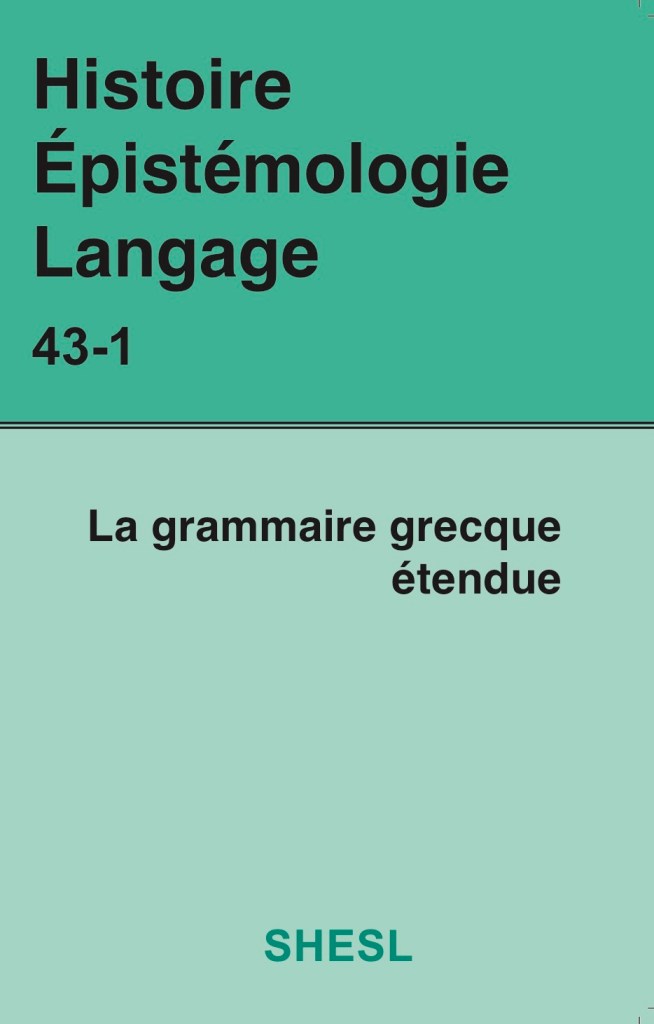 2021. Histoire Épistémologie Langage, 43-1. La grammaire grecque étendue. 244 p. ISSN : 0750-8069
