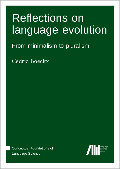 Boeckx, Cédric. 2021. Reflections on language evolution: From minimalism to pluralism. Berlin : Language Science Press. Conceptual Foundations of Language Science, 6. 65 p. ISBN : 978-3-98554-024-2 DOI : 10.5281/zenodo.5524633