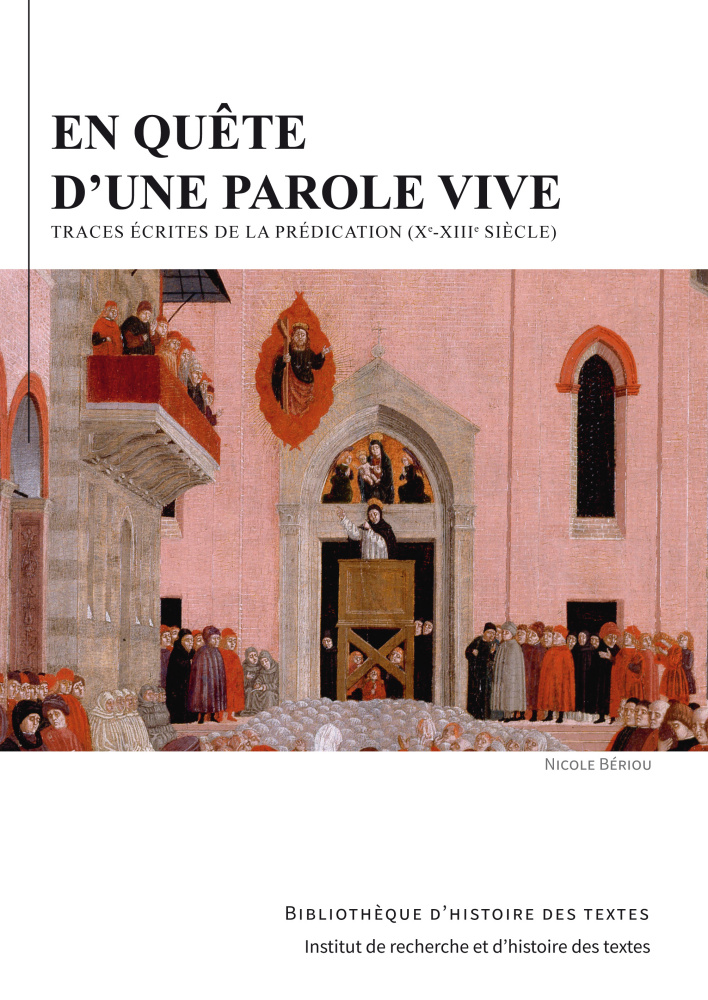 Nicole Bériou. 2022. En quête d’une parole vive. Traces écrites de la prédication (Xe-XIIIe siècle). Paris: Institut de recherche et d’histoire des textes. Bibliothèque d’histoire des textes. 456 p. ISBN 9782493209023. DOI: : 10.4000/books.irht.822