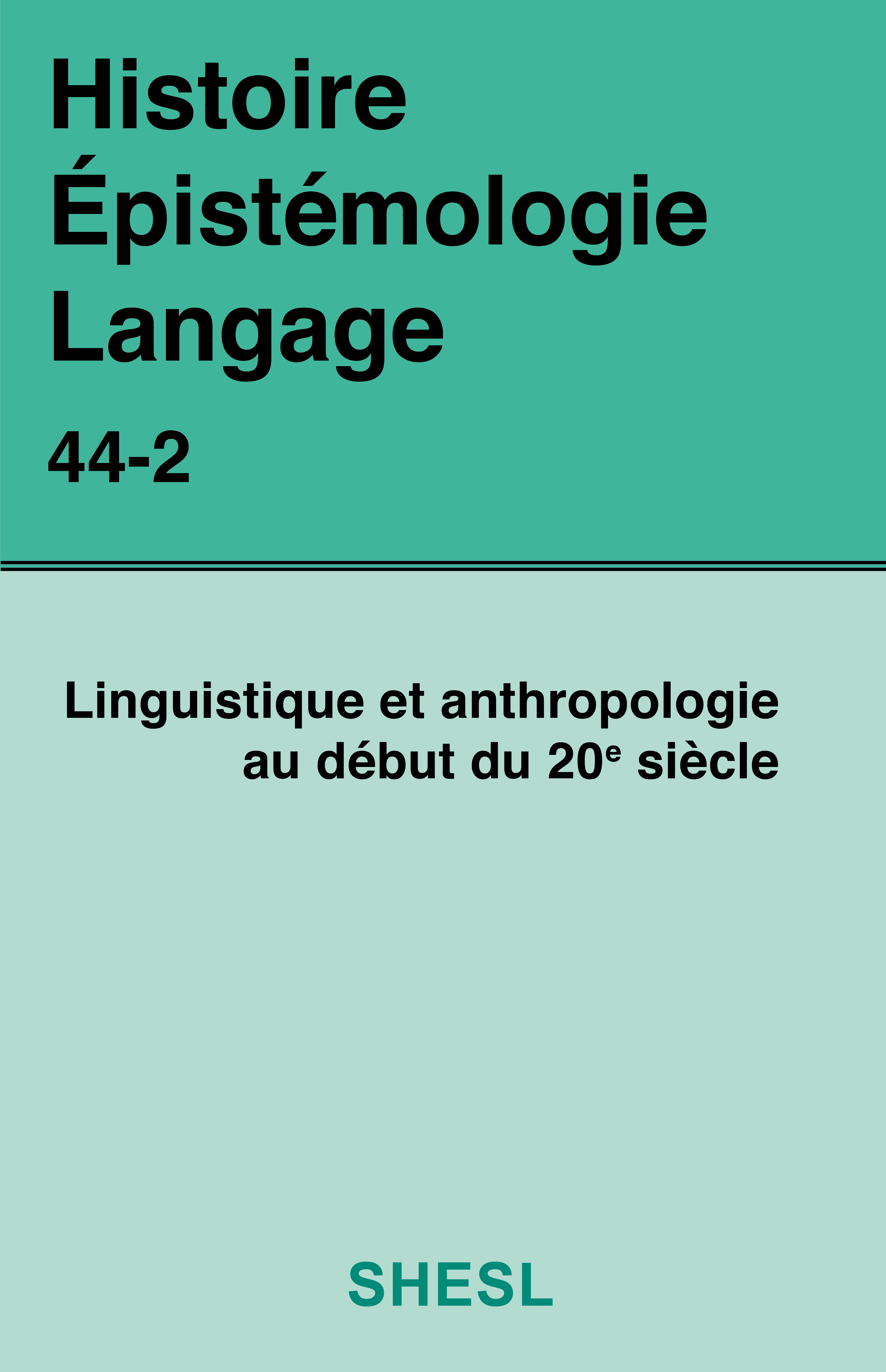 Histoire Épistémologie Langage 44-2. 2022. Linguistique et anthropologie au début du 20e siècle [dossier thématique sous la direction de Pierre-Yves Testenoire]. SHESL: Paris. 200 p. ISSN 0750-8069