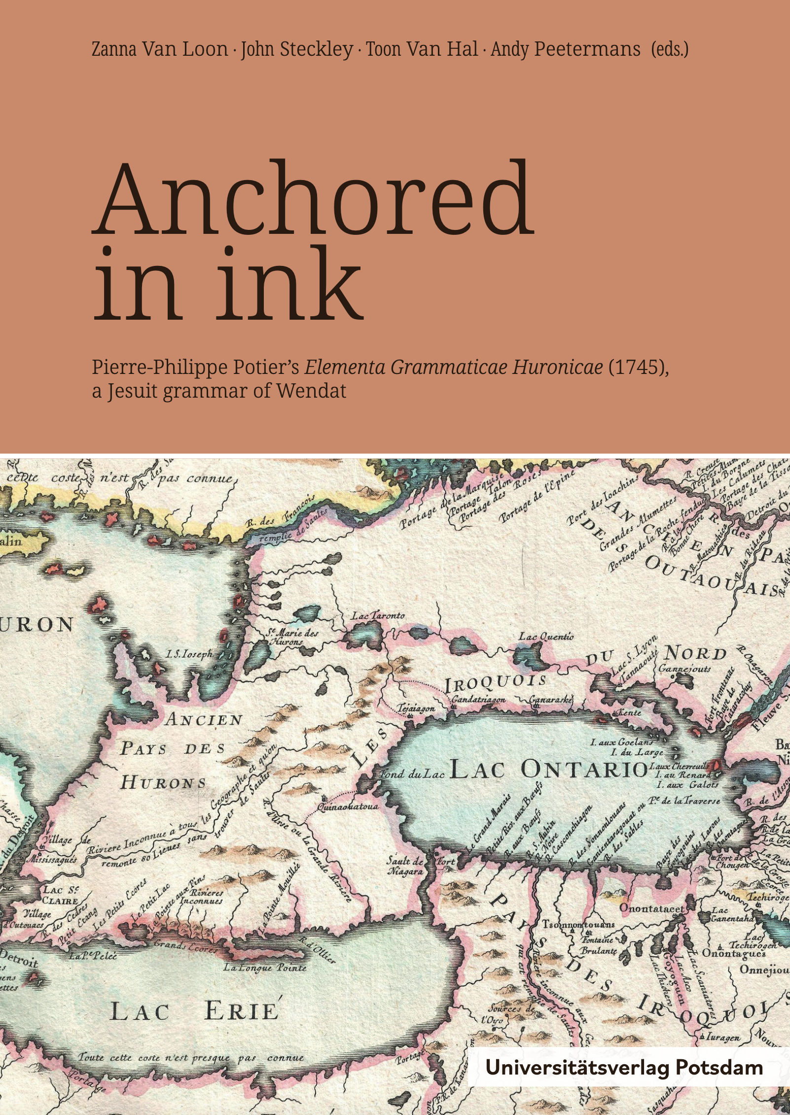 Zanna Van Loon, John Steckley, Toon Van Hal, Andy Peetermans, eds. 2023. Anchored in ink: Pierre-Philippe Potier’s Elementa Grammaticae Huronicae (1745), a Jesuit grammar of Wendat. Potsdam: Universitätsverlag Potsdam. 446 p.