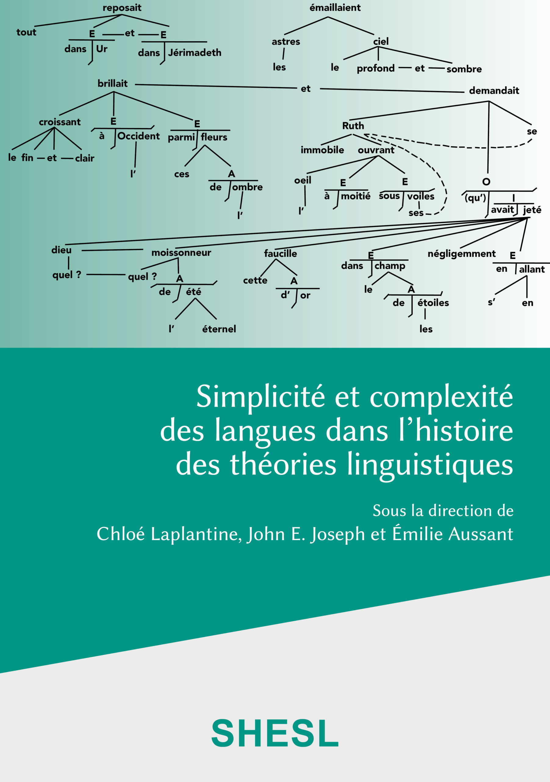 Laplantine, Chloé, John E. Joseph & Émilie Aussant, ed. 2023. Simplicité et complexité des langues dans l’histoire des théories linguistiques. Paris: SHESL (HEL Livres, 3). 486 p. ISBN 979-10-91587-21-1. DOI : 10.5281/zenodo.8098638