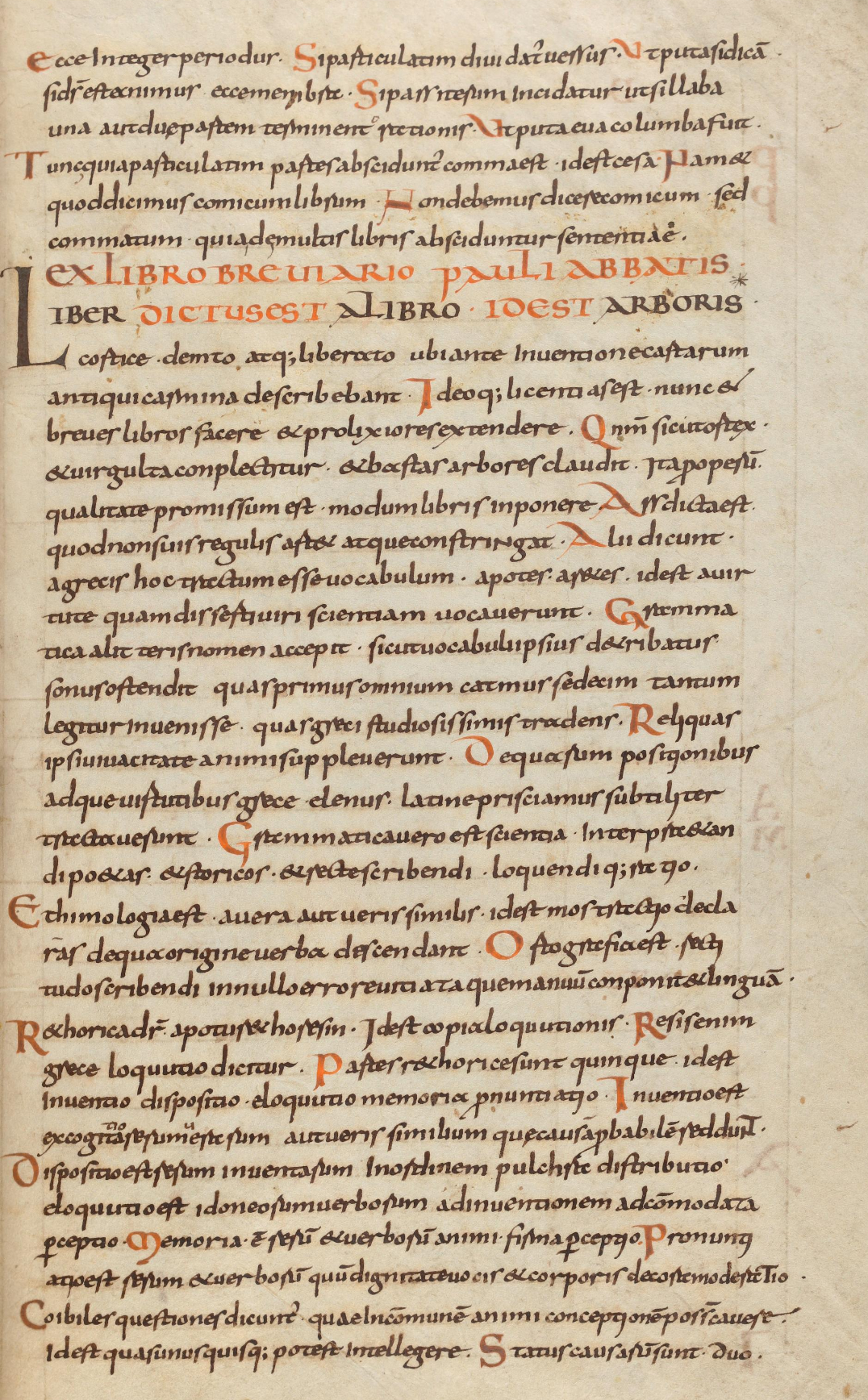 Let’s look at the case again. The existence of this hypothetical Abbot Paul leads us to postulate three levels of excerption. (1) Cassiodorus selects extracts to compose his Institutiones; (2) an “Abbot Paul” abbreviates Cassiodorus; (3) an anonymous person produces the extracts entitled “Ex libro breuiario Pauli abbatis“. We propose to remove one of these levels by reading the title preserved in the Erfurt manuscript as follows: Ex libro breuiario Flauii abbatis. The use of the uncial explains the corruption of this Flauii, which referred to Flavius Magnus Aurelius Cassiodorus, the founding father of Vivarium, but obviously had no meaning for the copyists, into Pauli. Restoring the title affixed to δ (which IM does not specify must be the model common to Erfurt and †Chartres) puts an end to the search for this fictitious Paul, and places the extracts immediately after their Cassiodorian model. The expression liber breuiarius conveniently refers to the Institutiones, a compendium of antique knowledge.