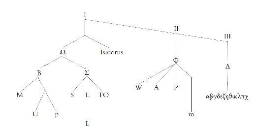 The edition by IM was an opportunity to take up another important issue, the implications of which had probably not been seen before. Thus on p. 19*, IM describes the birth of the Institutiones in the shadow of the Vivarium library, which was in the process of being built up, as evidenced by the uncertainty over Priscian’s status as a Greek or Latin author: the change from ω to Ω reflects the growth of the library. She then proposes to distinguish (p. 20*) [2.2] “uno stadio intermedio tra ω e Ω: la testimonianza di Isidoro e Paulus abbas” (= ω1), situating these two authors as the earliest indirect witnesses to Ω and to the text in general.