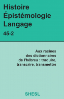 Histoire Épistémologie Langage 45(2). 2023. Aux racines des dictionnaires de l’hébreu : traduire, transcrire, transmettre. Dossier thématique dirigé par Judith Kogel. Paris: SHESL. 273 p. ISSN 0750-8069