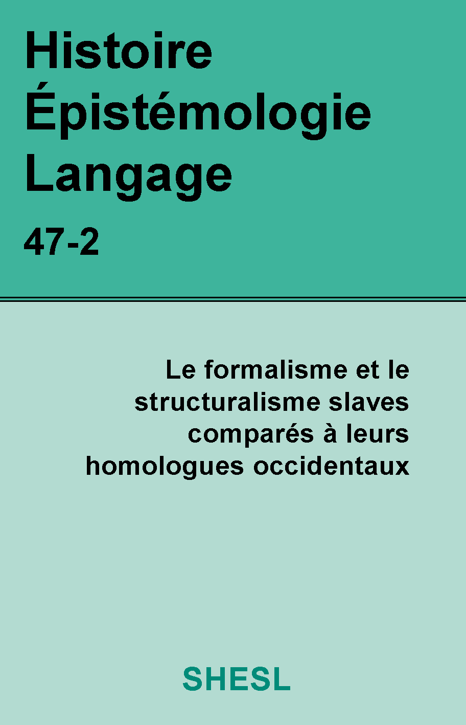 Histoire Epistémologie Langage 47(2). 2025. Le formalisme et le structuralisme slaves comparés à leurs homologues occidentaux, dossier thématique sous la direction de Serguei Tchougounnikov. Paris: SHESL. 340 p. ISSN: 0750-8069